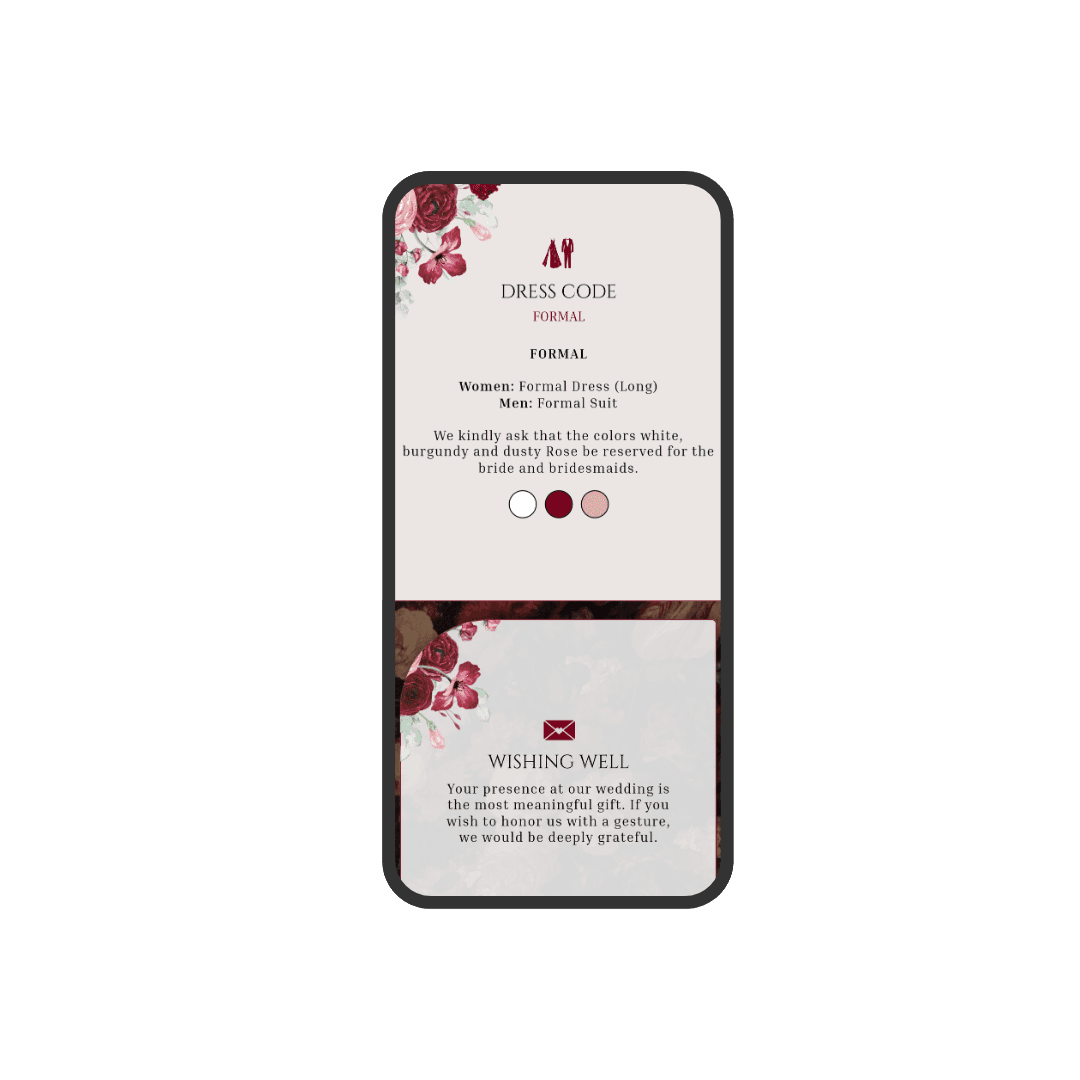 Cabernet is an elegant wedding invitation that blends the richness of burgundy with the softness of blush, creating a color palette that reflects intensity, romance, and passionate love. Delicate watercolor florals bring movement and lightness to the design, beautifully balancing the depth of the tones with a subtle, artistic touch. The overall style feels refined and emotionally expressive, making it perfect for couples who want to celebrate a love that is deep, powerful, and truly passionate.