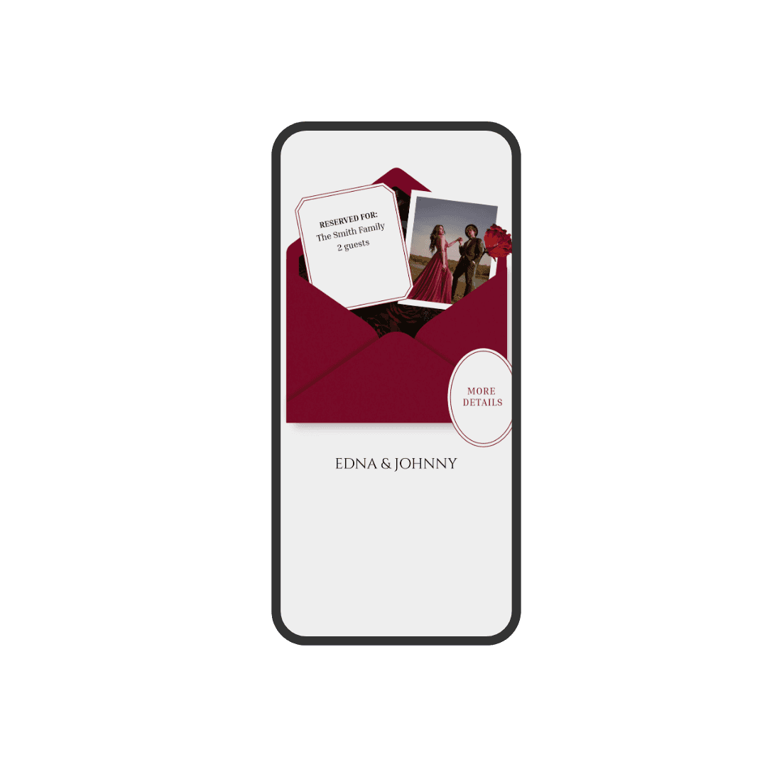 Up to 150 personalized envelopes with guest names and number of attendees + general passes for unlimited sending.