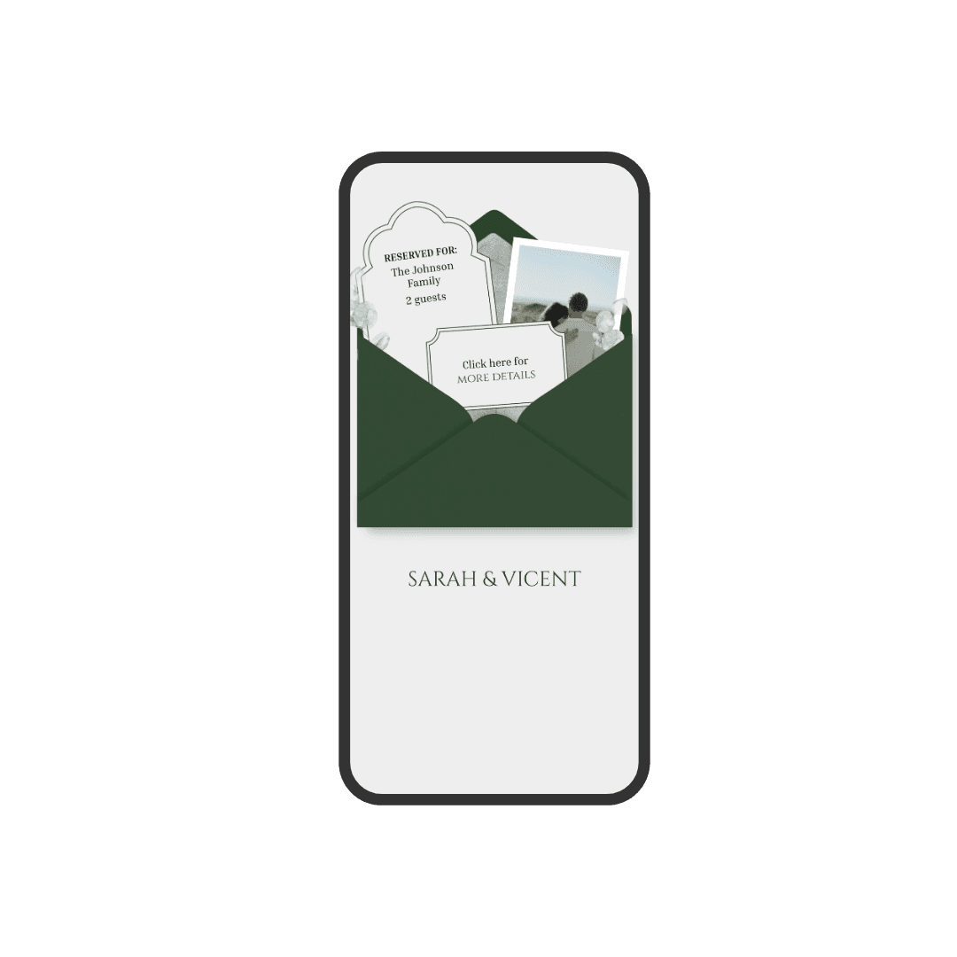 Up to 150 personalized envelopes with guest names and number of attendees + general passes for unlimited sending.
