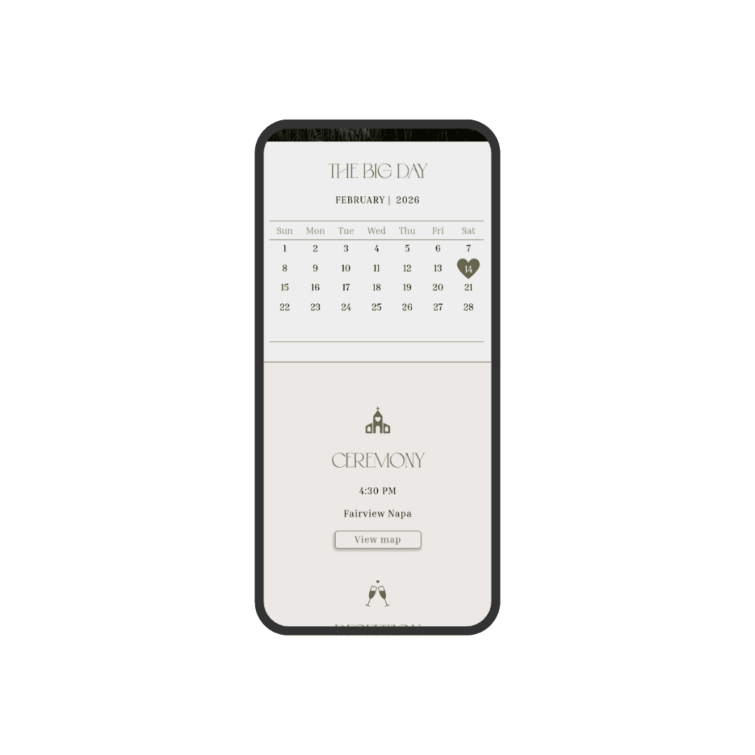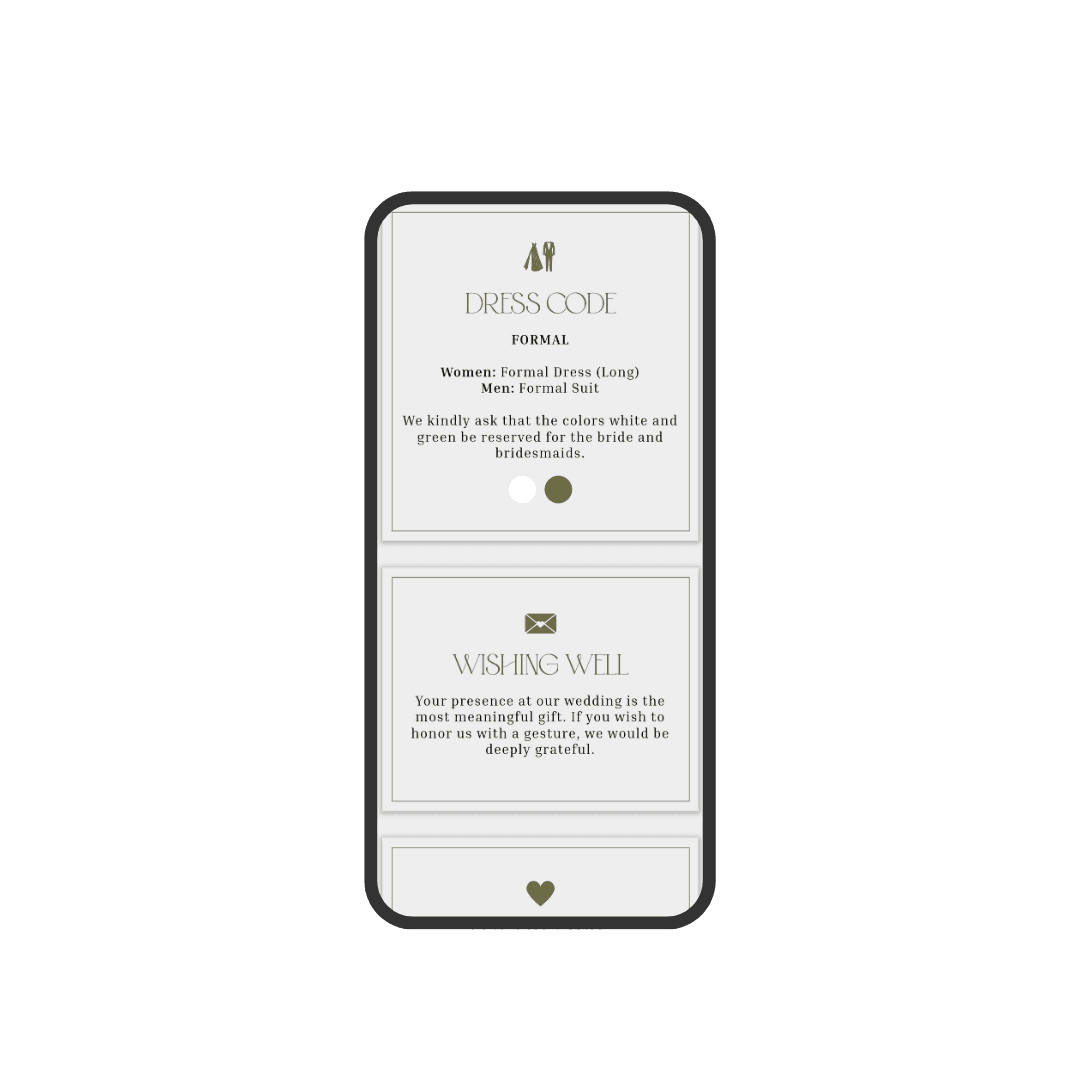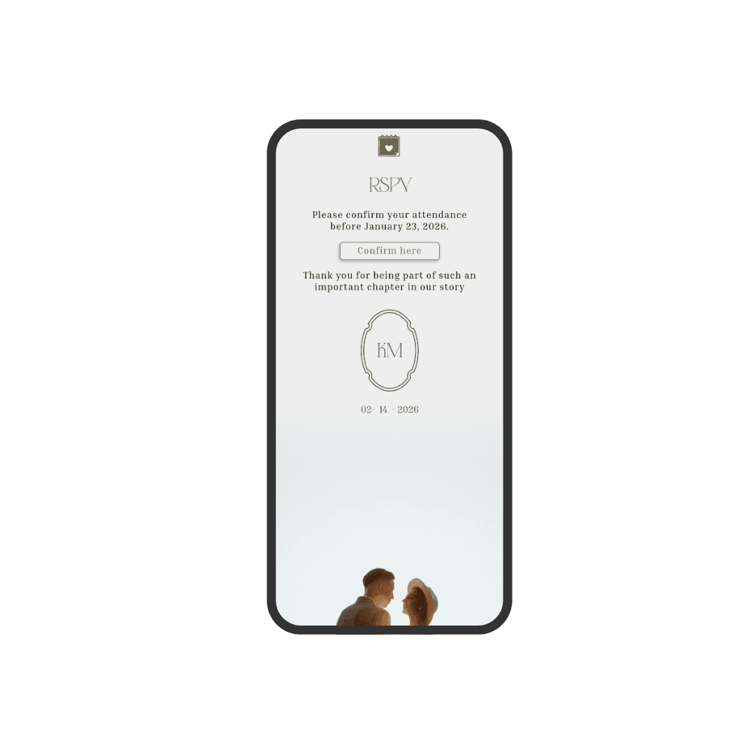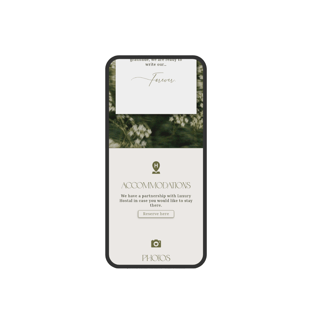 Verdant is an invitation designed in olive-green tones, featuring a modern and minimalist style that conveys natural elegance. Its soft textures and delicate animations create a harmonious and contemporary visual experience. An ideal choice for couples seeking a subtle, sophisticated invitation with a touch of nature.
